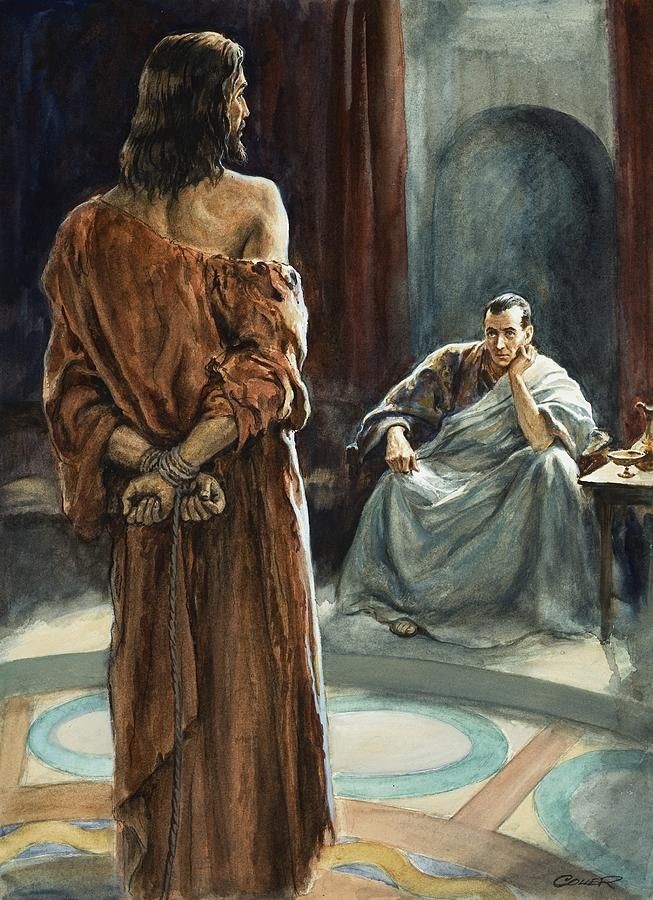 Οι ερωτήσεις που απευθύνονται στον Ιησού στη διάρκεια της θρησκευτικής του δίκης αναφέρονται στην ιδιότητά του ως Μεσσία (Χριστό) και Υιό του Θεού. Στην πολιτική του όμως δίκη, μπροστά στον Πιλάτο, κατηγορείται για τη βασιλική του ιδιότητα. Οι Ευαγγελιστές επωφελούνται από το γεγονός αυτό για να δείξουν ότι το Πάθος του αποτελεί την παράδοξη αποκάλυψη αυτής της ιδιότητάς του. Όταν τον ρωτάει ο Πιλάτος, αν είναι “ο βασιλιάς των Ιουδαίων” (Μκ, 15,2, Ιω. 18, 33, 37), ο Ιησούς δεν αρνείται αυτόν τον τίτλο, αλλά προσθέτει ότι η βασιλεία του “ουκ έστιν εκ του κόσμου τούτου”, και άρα δεν ανταγωνίζεται τον Καίσαρα.